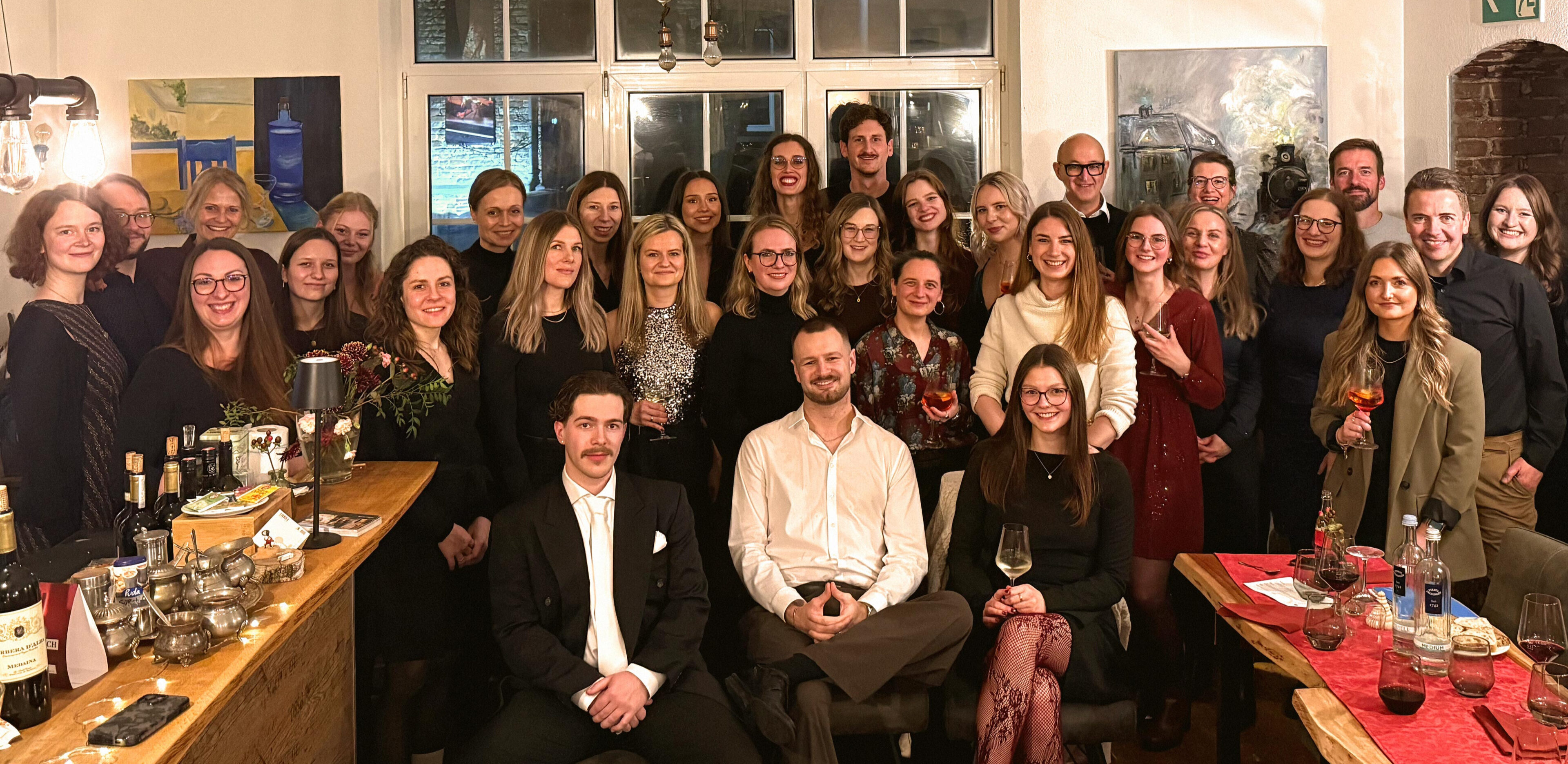 Ein so wertvolles Jahr verdient natürlich auch einen angemessenen Abschluss: Bei einem guten Abendessen und einem noch besseren Nachtisch wurde es schon fast sentimental. Das lag bestimmt an unserem selbstgemachten Kalender. Eine kleine Aufmerksamkeit an unsere Chefs mit 12 Seiten des a-Teams – natürlich von der Schokoladenseite (sorry Heidi, dein Foto brauchen wir nicht)!